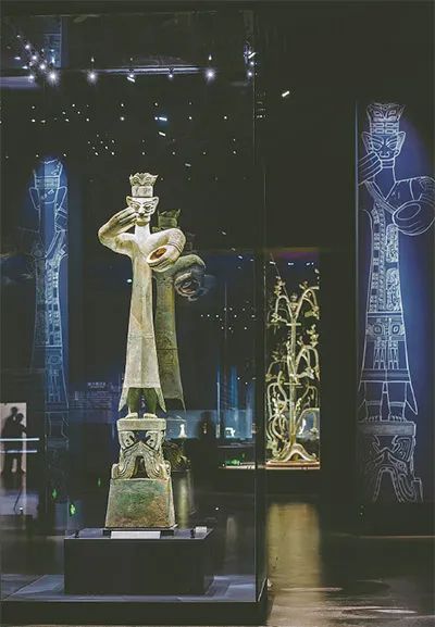 图为商代晚期的青铜大立人像。三星堆博物馆供图张艳/摄