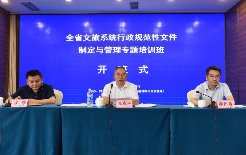 为进一步深入学习贯彻习近平法治思想,落实省委、省政府全面依法治省、法治政府建设各项决策部署,7月13日至7月15日,由四川省文化和旅游厅主办、四川艺术职业学院承办的“全省文旅系统行政规范性文件制定与管理专题培训班”在成都开班。全省21个市(州)文化和旅游行政部门分管政策法规工作的领导、政策法规科(处)负责同志,以及厅机关、省文物局机关各处(室、局)负责同志及业务骨干,共计80余人参加了此次培训。四川省文化和旅游厅党组成员、总规划师王成平同志,四川艺术职业学院党委书记李阳春同志出席开班式并讲话。