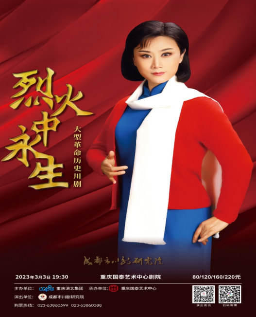 川剧《烈火中永生》讲述在新中国成立前夕,江姐接受党的指派前往华蓥山区开展工作……旨在通过对革命先烈的缅怀,回顾党的革命历程,接受党的精神洗礼,反映共产党人勇于奋斗、不怕牺牲的大无畏精神和为人民谋幸福的初心。