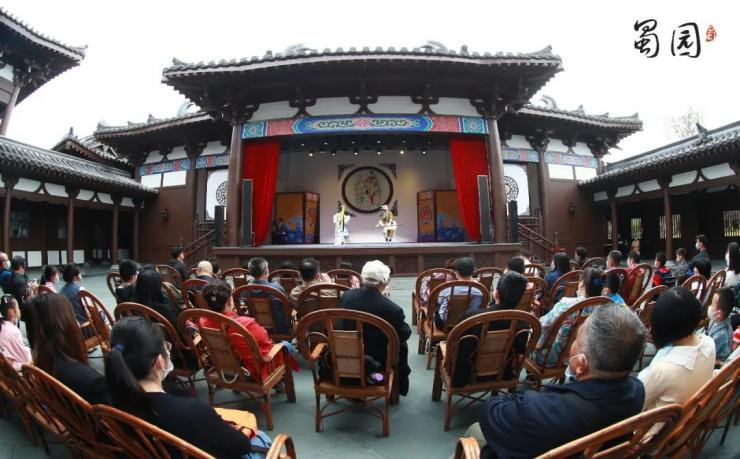 蜀园(成都川剧艺术公园)蜀音阁设有传统戏剧舞台—万年台,成都市川剧研究院在每周六下午14:30演出一场“蜀音绕梁——川剧经典折子戏惠民演出”。