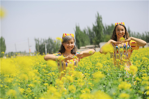 满目金黄香百里,踏春赏景迎客来。4月26日,在新疆巴音郭楞蒙古自治州博湖县塔温觉肯乡芜菁种植基地,200余亩芜菁花竞相开放,吸引游客前来观赏。春暖花开的美好季节里,博湖县在抓好疫情防控的前提下,多措并举推进乡村旅游稳步复苏。