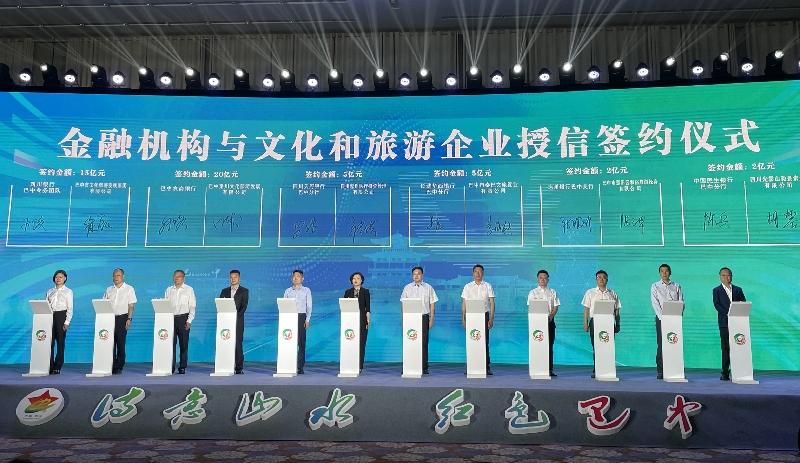 活动由四川省文化和旅游厅、巴中市人民政府、四川省地方金融监督管理局、人民银行成都分行联合主办,巴中市文化广播电视和旅游局、巴中市金融工作局、人行巴中市中心支行、银保监会巴中监管分局联合承办。四川省文化和旅游厅一级巡视员宋铭,中共巴中市委常委王毅,巴中市副市长任小娟,四川省地方金融监督管理局一级巡视员周敏泉,人民银行成都分行党委委员、副行长黄全祥,省银保监局二级巡视员周建川等领导出席活动。
