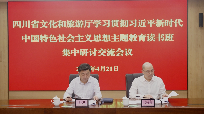 4月21日,文化和旅游厅召开学习贯彻习近平新时代中国特色社会主义思想主题教育读书班集中研讨交流会。省委主题教育第七巡回指导组组长丁成明、成员李存茂到会指导。受厅党组书记、厅长戴允康委托,厅党组成员、机关党委书记杨红梅主持会议并讲话。