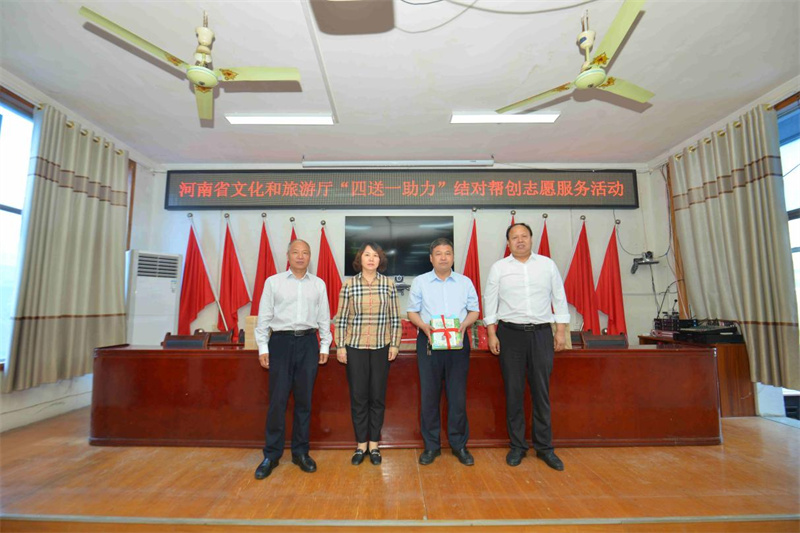 为深入学习贯彻党的二十大精神,推进精神文明建设,促进城乡精神文明融合发展,助力乡村振兴,5月24日至25日,河南省文化和旅游厅赴南阳开展“新时代宣讲师”曁“四送一助力”结对帮创志愿服务活动。本次活动包括图书捐赠、专家授课、法律宣传咨询等内容。河南省文化和旅游厅二级巡视员吕承俊,河南省文化和旅游厅机关党委副书记、厅文明办主任朱华,南阳市文化广电和旅游局二级调研员余晓勇,南阳市卧龙区委常委、宣传部长、副区长王志德,南阳市卧龙区人民政府副区长张颖,卧龙区新时代文明实践中心负责人周丛乐,卧龙区蒲山镇党委书记齐冬华,蒲山镇党委副书记、镇长赵玉涛等参加了活动。
