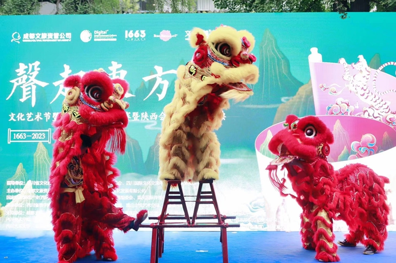 点睛、采青、登高、吐字纳福……5月20日下午,在一场热闹喜庆的南派舞狮表演中,第一届“声起东方”文化艺术节在成都陕西会馆正式开幕。