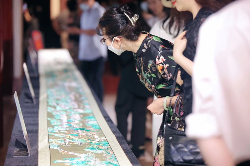 本次活动中,来自岩彩、陶瓷、蜀锦、蜀绣、皮影、动漫、漆器、建筑等诸多领域的艺术家齐聚一堂。其中,由国家级非物质文化遗产项目“蜀锦织造技艺”省级传承人胡光俊带来的蜀锦作品,与国家级非遗项目“蜀绣”省级代表性传承人彭世平的蜀绣作品,在展厅内熠熠生辉,以精湛的技艺诠释着巴蜀大地的“锦绣”创造。