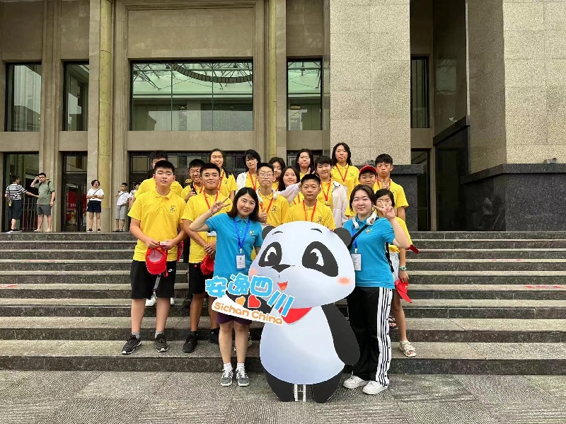 7月11日,2023“中国寻根之旅”夏令营-四川营开营仪式在成都举行。四川文旅吉祥物—安逸熊猫担任“迎宾”,受到海外华裔青少年喜爱,纷纷合影留念。