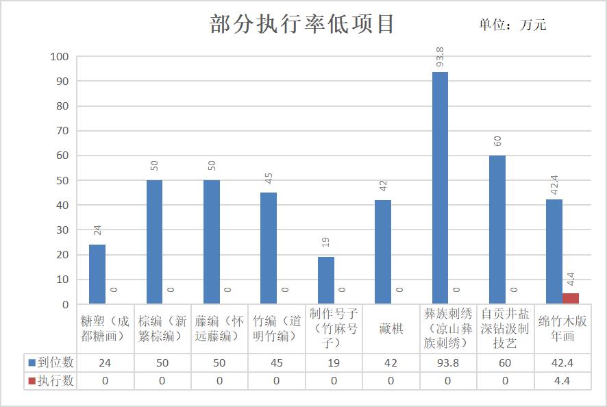 如在52个国家级非遗代表性项目中有8个项目因疫情影响执行率为0,部分项目资金执行率低,执行进度较缓慢。
