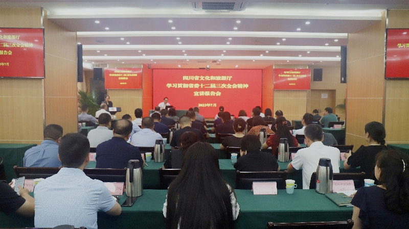 为进一步引导厅直系统党员干部全面准确领会把握省委十二届三次全会的重要部署和实践要求,激励文旅干部拼经济搞建设、当先锋打头阵,7月19日上午,文化和旅游厅举办了学习贯彻省委十二届三次全会精神宣讲报告会。邀请四川省委省直机关党校副校长陈学明教授到厅机关作《推进新型工业化 加快建设现代化产业体系学习贯彻省委十二届三次全会精神》专场主题报告。受省委宣传部副部长,文化和旅游厅党组书记、厅长戴允康委托,文化和旅游厅党组成员、机关党委书记杨红梅主持报告会。省委主题教育第七巡回指导组成员李存茂到会指导。