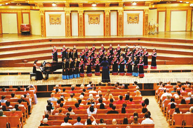 自2021年成团以来,四川国际童声合唱团一直大力推进四川民歌传唱计划。此次来到维也纳,合唱团精心准备了彝族民歌《古嫫阿芝》和苗族民歌《朵荡之哟》,天真的童声与优美的旋律深深感染了在场每一位观众。“对外传播四川特色文化是我们的初心,我们坚信,凭借独树一帜的艺术风格和完美的演绎,一定能更好地让全世界感受四川文化魅力。”合唱团相关负责人表示。