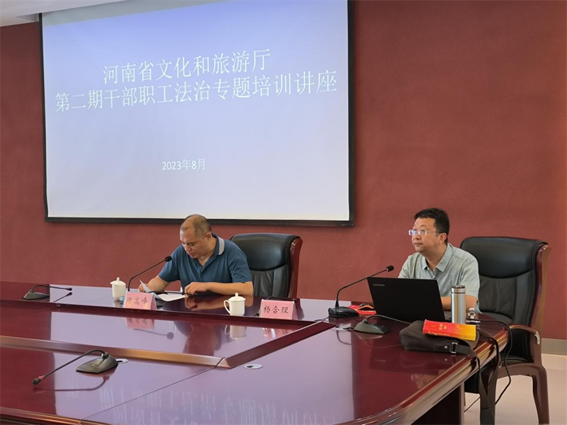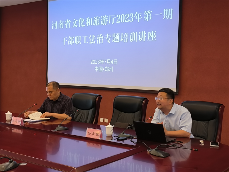 为全面贯彻落实党的二十大精神,深入学习贯彻习近平法治思想,深刻领悟“两个确立”的决定性意义,不断增强“四个意识”,坚定“四个自信”,做到“两个维护”,进一步提升河南省文化和旅游厅依法行政能力水平,今年以来,我厅先后举办了两期干部职工法治专题培训讲座,邀请了河南财经政法大学杨合理教授作为法治专题培训讲座的主讲老师。厅机关各处室和厅直同创单位干部职工参加了法治专题培训讲座。