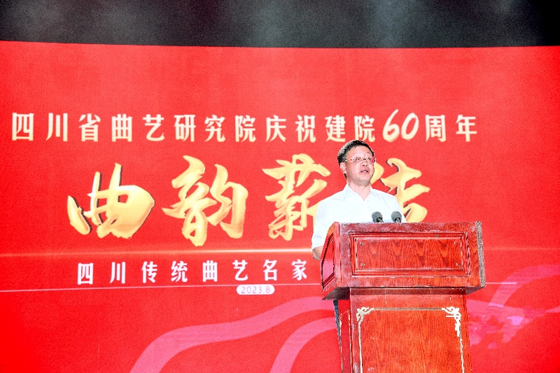 8月27日晚,四川省曲艺研究院庆祝建院60周年开幕式暨“曲韵薪传——四川传统曲艺名家名段”精品汇演活动在成都市宽窄巷子东广场举行。省委宣传部副部长,文化和旅游厅党组书记、厅长戴允康出席活动并致辞。中国曲艺家协会分党组书记、驻会副主席杨发航,中国文联网络文艺传播中心主任郝向宏,文化和旅游厅党组成员、副厅长袁艺等有关领导出席活动。