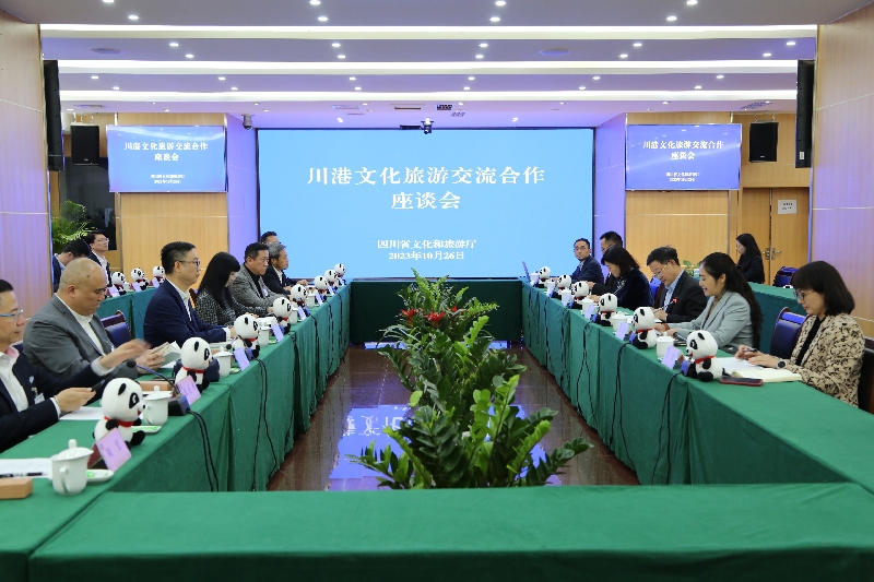 10月26日,省委宣传部副部长,文化和旅游厅党组书记、厅长戴允康在文化和旅游厅机关,会见香港贸易发展局总裁方舜文一行。双方就加强交流合作,促进川港文旅发展交换意见。