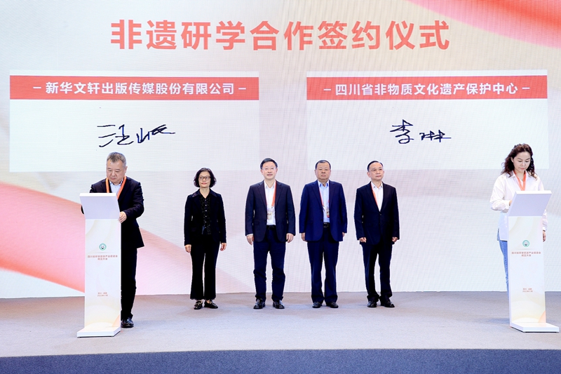 会上,遂宁市委常委、副市长、市直机关工委书记岳建光,内江市文化广播电视和旅游局局长张德超,四川旅投教育投资有限责任公司董事长任明德,峨眉山旅游股份有限公司研学营地负责人肖丹晖,兴文县僰王山营地负责人甘林露,国家金牌导游、国家高级导游马恋到场祝贺并推介研学旅游项目。新华文轩出版传媒股份有限公司与四川省非物质文化遗产保护中心签订战略合作协议。