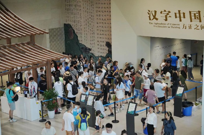 观众在“汉字中国——方正之间的中华文明”展厅外排队。成都博物馆供图