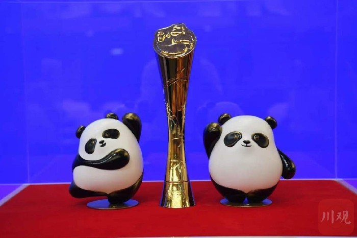 金熊猫奖吉祥物与奖杯。肖雨杨 摄