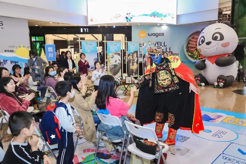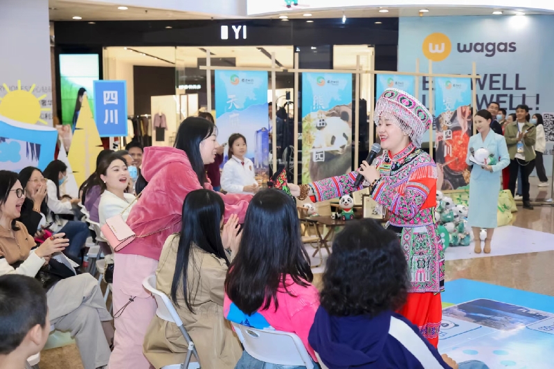 当天,在广州中信广场还举办了2023“安逸”熊猫主题推广活动,让广州市民游客在零距离互动中感受巴蜀文化和冬游四川的魅力。据了解,活动现场设置了游戏区、各市州展示区、熊猫舞台、文创礼品区、非遗表演区以及DP打卡点等特色展区,充分展示天府之国、安逸四川、熊猫家园、古蜀文明四大名片,为现场参与者带来丰富多元的互动体验。活动由“和‘安逸’一起玩”、“和‘安逸’一起看”、“和‘安逸’一起走”三大主题组成,通过市州主题推介、四川冬季文旅安逸大富翁、四川旅游问答小游戏等趣味活动让现场群众在热情参与中更加了解四川文旅的特色和玩法,“安逸”熊猫人偶的互动也吸引了众多市民游客互动合影。