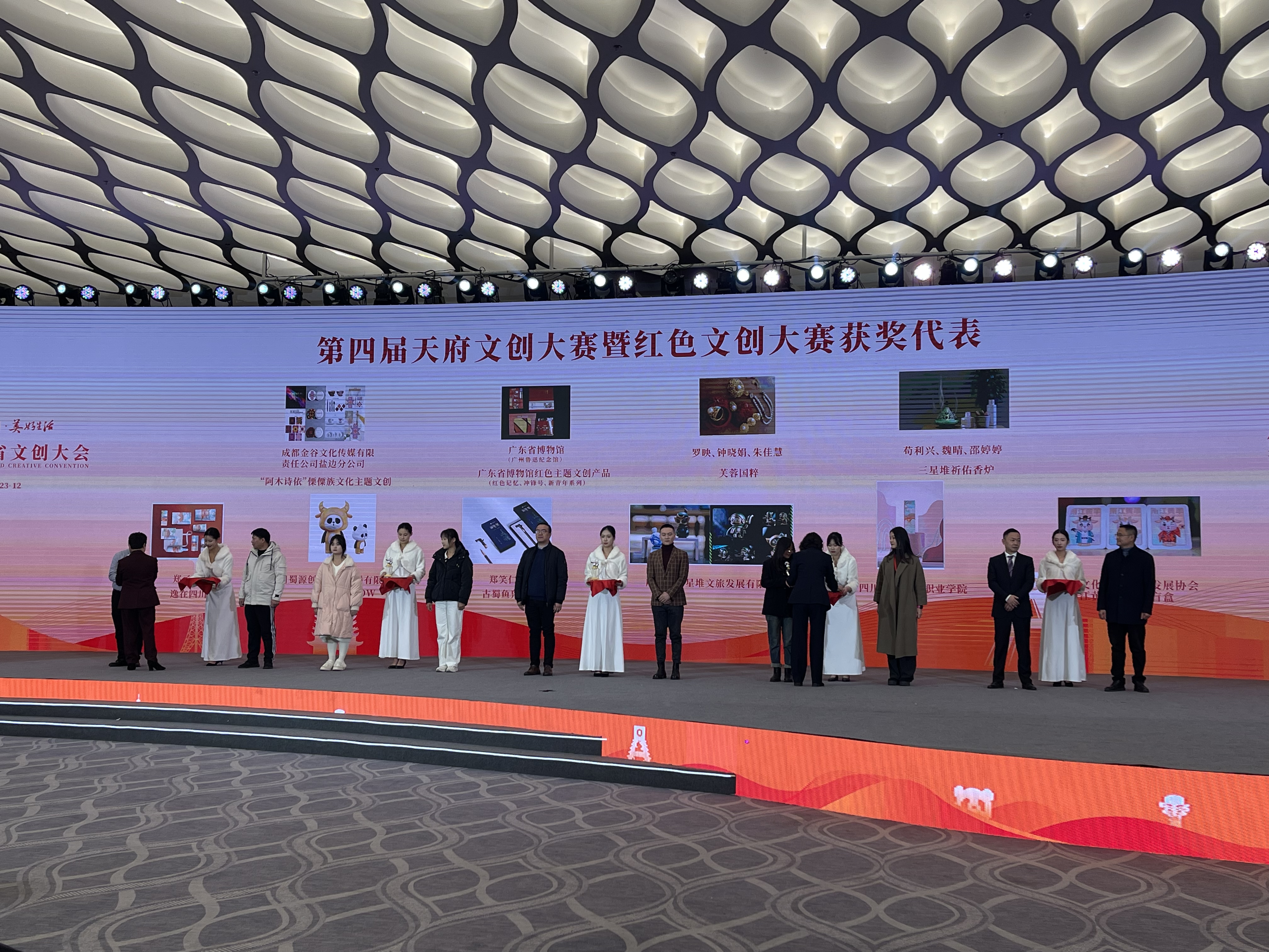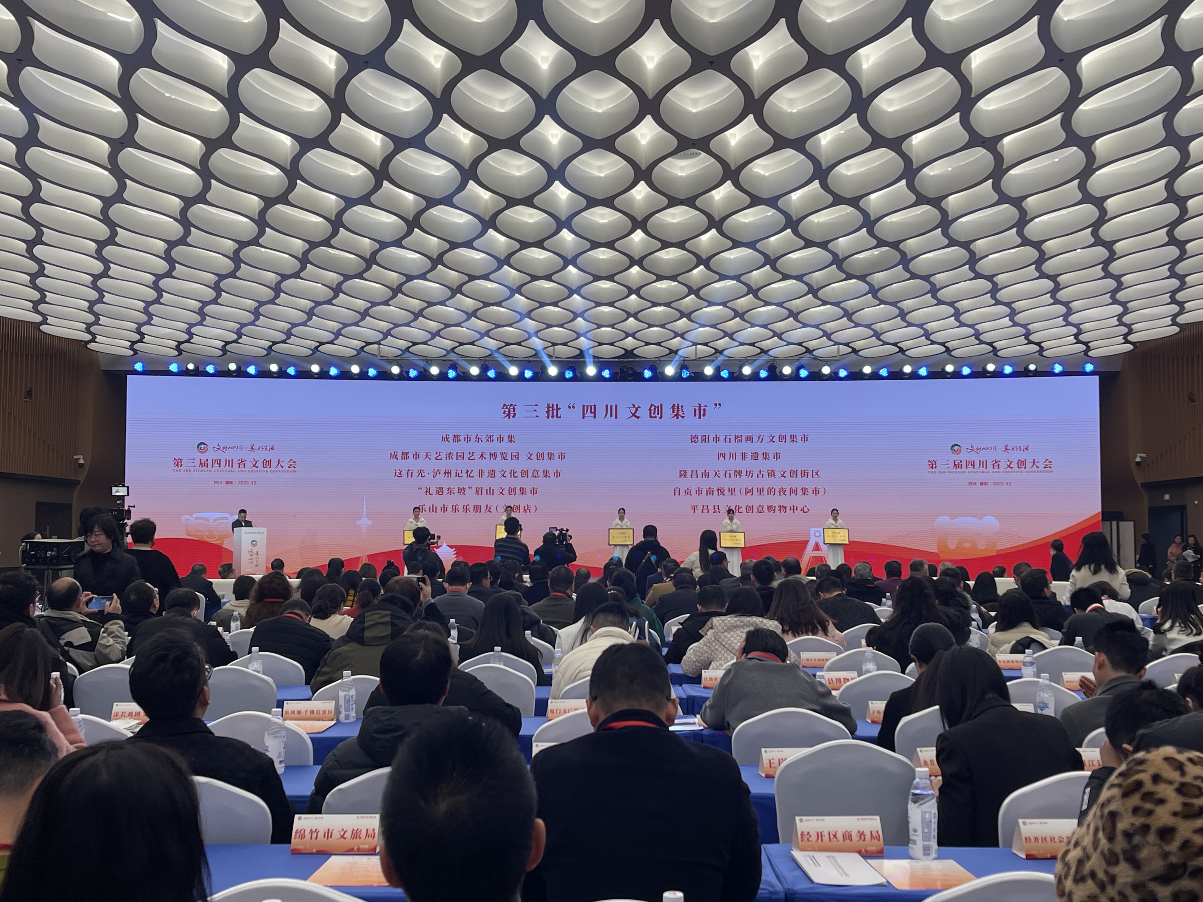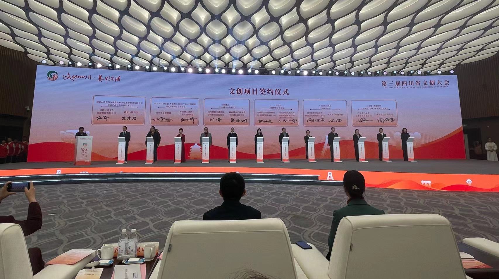 当天开幕的第三届四川省文创大会上,通报了省文创产业联盟年度工作,酒店文创、景区文创、文博文创、动漫文创等代表作了交流介绍,为成都市东郊市集等10个第三批“四川文创集市”授牌,为第四届天府文创大赛暨红色文创大赛10位获奖代表和9个四川省文化创意产业联盟优秀成员单位代表颁奖,香港贸发局、故宫博物院、知识产权出版社、泡泡玛特国际集团等单位作了文创工作经验交流,峨眉山联名文创产品研发项目、川粤文创合作共建项目等6个文创项目进行了现场签约。
