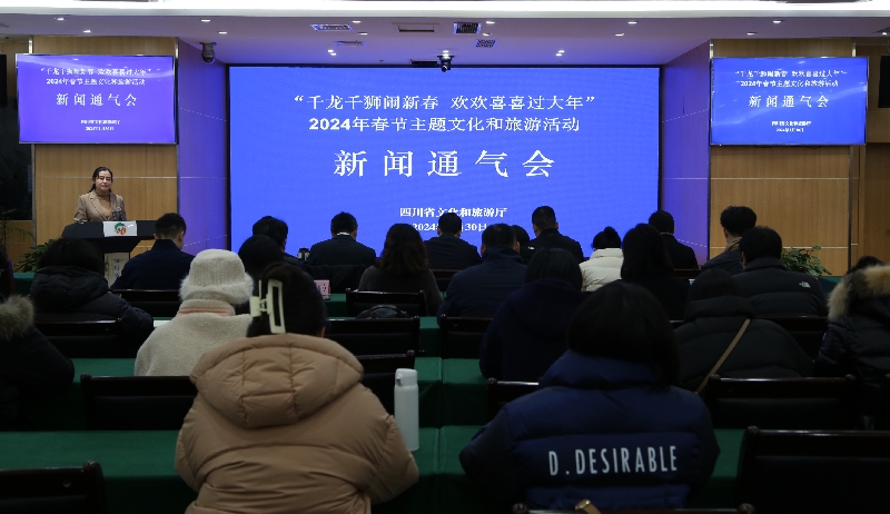 千龙千狮闹新春,欢欢喜喜过大年。1月30日,四川省文化和旅游厅在成都举行2024年春节主题文化和旅游活动新闻通气会。