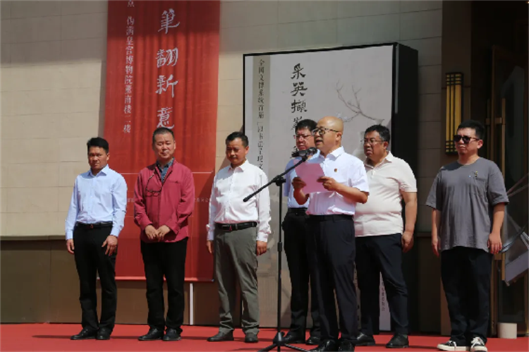 2024年6月14日,由中国博物馆协会博物馆图文典籍与金石拓片专业委员会(以下简称“图文典拓专委会”)主办,伪满皇宫博物院承办的“采英撷华 笔翻新意——全国文博系统首届‘以书法呈现文物藏品’主题展”在伪满皇宫博物院薰南楼开幕。开幕式由图文典拓专委会秘书长、河北博物院副院长王然主持,图文典拓专委会主任委员、河北博物院党委书记、院长熊慧彪、吉林省博物院院长韩戾军、伪满皇宫博物院副院长张微、伪满皇宫博物院薰南书画院副院长裴德文以及部分参展的书法家参加展览开幕式。