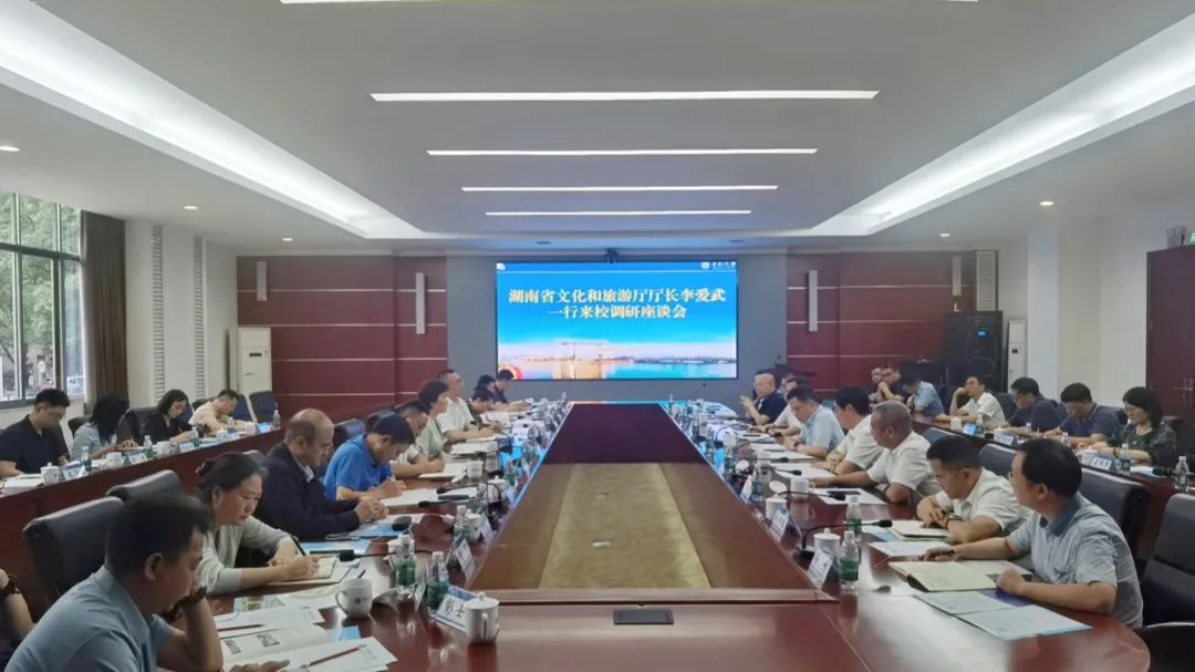 6月18日,省委宣传部副部长、省文旅厅党组书记、厅长李爱武一行先后走访中南林业科技大学、湖南师范大学、湖南大学、中南大学等高校,就“推动文旅与科技深度融合、文化与旅游深度融合、编制湖南‘十五五’时期文旅发展规划、拓展厅校合作路径,助力湖南文旅高质量发展”开展调研座谈。中国工程院院士、中南大学校长李建成,第二十届中央候补委员、中国工程院院士、湖南师范大学校长刘仲华,中南林业科技大学党委副书记、校长仇怡,湖南大学党委副书记唐珍名分别参加座谈。