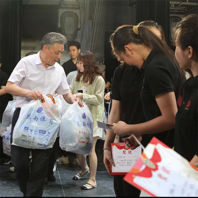 在省杂技团演出大厅,省文旅厅关工委常务副主任黄锡斌代表省文旅厅关工委向杂技班小学生致以亲切问候,勉励杂技小学员要勤学苦练,练好杂技表演艺术基本功;要努力学习,掌握好文化知识,提高综合素质,争做全面发展的好少年,永攀杂技表演艺术高峰,为福建杂技事业发展作出贡献。厅关工委领导向孩子们赠送礼物,并与杂技班小学员合影留念。