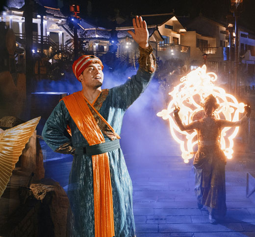 团队打破传统演艺的舞台式表演和画框式观看模式,以海、岛、港、船、街、楼等为全景式表演空间,让表演者走下舞台,在游客身边表演太守斗宦官、捕快护百姓、相遇波斯人等故事,营造了“处处皆舞台、人人皆演员”的演出效果。