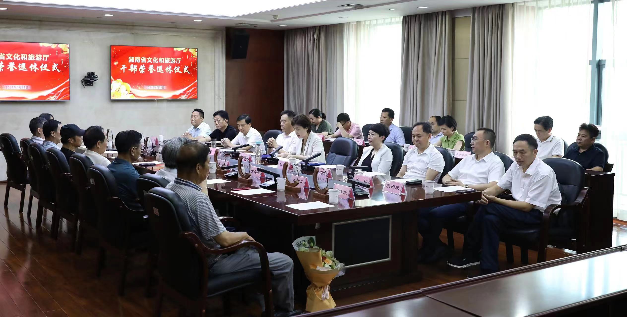 6月21日下午,湖南省文化和旅游厅举行干部荣誉退休仪式,以简约朴素而不失温馨的方式,向近期退休的同志表达诚挚感谢和衷心祝福。省委宣传部副部长,厅党组书记、厅长李爱武出席活动并讲话。厅党组成员、副厅长张希慧主持。