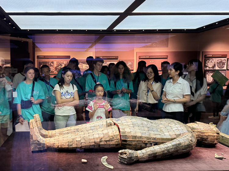 7月5日下午,来自美国7个州、14所中学的约190名师生组成的“青春同行”交流团,正式探访河北博物院。交流团一行深入参观了院内多个精品展览,包括“战国雄风——古中山国”“大汉绝唱——满城汉墓”“乐享河北”非遗会客厅以及河北文化创意空间。