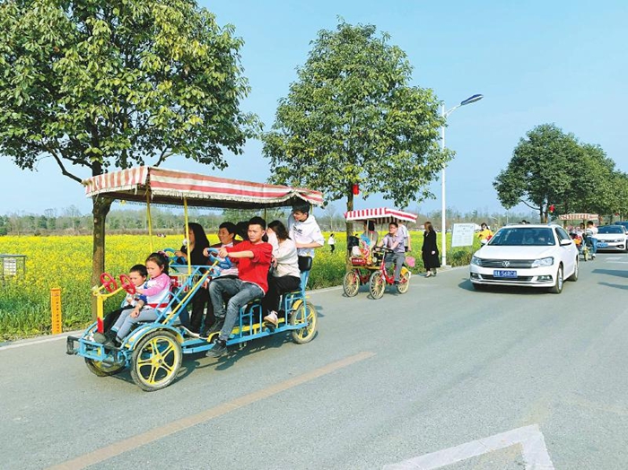 “车子朝前走。”下午4点,虽然已过当天的游玩高峰期,但仍有不少游客涌入郫都区青杠树村。记者在现场看到,主干道两侧已经停满了私家车。从村口处向景区内步行,游客悠闲地漫步踏青,谈花言笑。当地村民徐桂明告诉记者,乡村里的油菜花一开春意就浓了,“天气好,满眼绿色,最近来踏青的人明显变多了。”